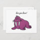Cute Purple Walrus Cartoon, Friendly Ocean Nature Postcard