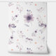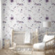 Cute wallpaper featuring purple flowers and bows on the white background. Perfect for girls' room and nurseries - Kate Eden Art