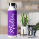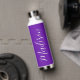 A cute purple water bottle with white monogram for a girl or guy who loves simple, handwritten gifts. Beautiful cursive script down the side of your bottle spelling out your name.