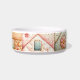 Cute patchwork / quilt style pet bowl featuring a cute cat and house in a lovely vintage style and pastel colours. Easily personalise the text - Kate Eden Art