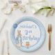 Cute Rabbit Blue 1st Birthday Party Paper Plate