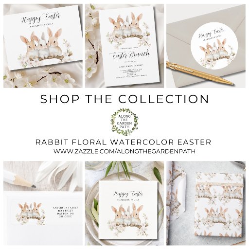 Cute rabbit floral Easter holiday card. Easy to change the text. Pretty watercolor design for Easter.
