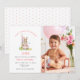 Cute hand painted watercolor rabbit in the garden 1st birthday girl invitation with photo,