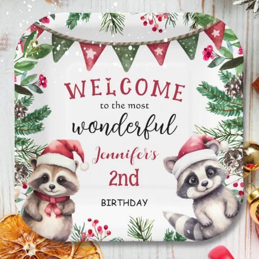 Cute Raccoon Christmas 2nd Birthday PartyDesigned by H-Art Studio Design