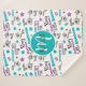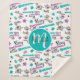 This blanket features raccoons, stars and word art on a white background. The monogram combines handwritten script fonts for a cute and whimsical look. This will make the ideal gift as it can be customised with a name and initial. If you would prefer the pattern on its own you are able to delete the text and border.