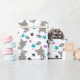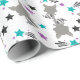 This cute wrapping paper is versatile and can be used for giving gifts or art and craft projects. The design features raccoons and stars on a white background. This is perfect for birthdays.