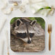 Paper plates with a photograph of a cute and curious racoon resting his face on a wooden log. Adorable.