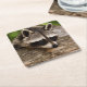 Cute Racoon Resting on a Log Square Paper Coaster