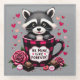 This cute racoon illustration brings an irresistibly charming touch to any Valentine's Day aesthetic, blending rustic country romance with cosy charm. A sweet racoon peeks out from a buffalo plaid heart-themed mug, surrounded by delicate roses, chocolates, and floating hearts, making it a perfect cottagecore love design. The soft yet vibrant colour palette enhances the whimsical woodland creature vibe, while the playful typography adds a lighthearted romantic touch. Whether you're drawn to kawaii racoon art or the warmth of cosy winter valentine themes, this illustration embodies love, joy, and a little bit of mischief. Ideal for anyone who adores woodland animals, sweet love designs, and rustic yet modern aesthetics, this piece is a heartfelt way to express affection in a fun and unique style. Ai generated artwork.