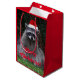 Medium size, Christmas holiday gift bag with red trim that features the whimsical photo image of a cute, forest Racoon wearing a red Santa hat. Select your gift bag style. A fun, animal design for the holidays!