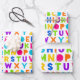 A bright & colourful rainbow coloured alphabet block letter design drawn by hand.