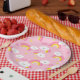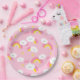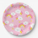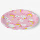 **Design Description: Cute Pink Rainbows and Clouds Paper Plates**