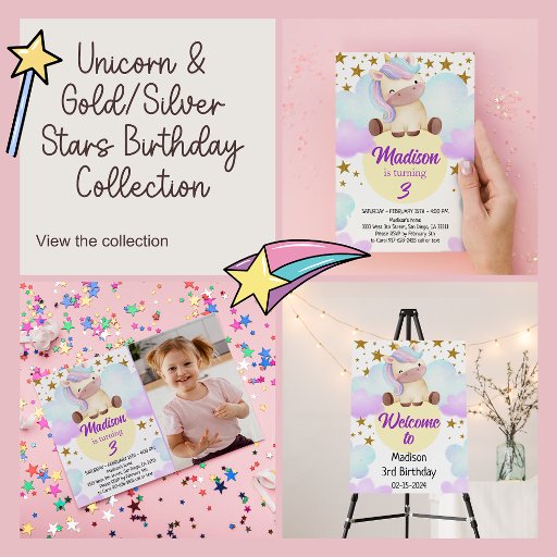 Unicorn & Gold/Silver Stars Birthday Collection Designed by Jessyca & Matheus Silva