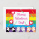 Cute Rainbow Cat Paws Up Happy Valentines Day Holiday Postcard