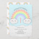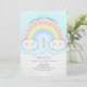 Cute Pastel Rainbow & Clouds Birthday Invitation in Blue and White