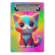 Cute Rainbow Coloured Sitting Kitten Cartoon Mini Clipboard