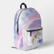 Lightweight and durable, our custom all-over-print Backpack is just what you need. The spacious interior is ideal for travel, school, gym, or any mobile storage need. Bring your stuff with you in style! Features Adjustable padded shoulder straps, two chambers on the inside for laptop storage, mesh side pockets and an identification label.