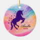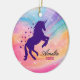 Cute rainbow girly unicorn holiday keepsake ceramic tree decoration