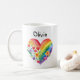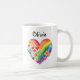 This cute mug features a rainbow heart design with flowers, in a watercolor style. Personalise with a name above the illustration, for a stylish individual gift.