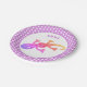 This cute rainbow lizard gecko is perfect for kid`s birthday party, especially for girls because of the pink, yellow and red colours. A gecko lizard girl birthday party paper plates with a child`s name. The gecko lizard in in rainbow colours - pink, yellow and red. The background is purple with white polka dot pattern.white. Change the name with yours.