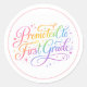 Cute Rainbow “Promoted to First Grade” Design Classic Round Sticker