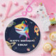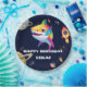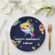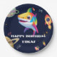 Cute rainbow Shark Galaxy Rocket birthday party Paper Plate