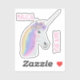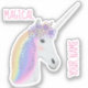Add some fun to your laptop, lunch box, packages and more with this Cute Rainbow Unicorn Magical Personalised Precut Vinyl Sticker.  It has a pretty white unicorn with flowers on top of her head.  Name is in pink trendy skinny and the text "magical."