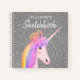 Keep your art in this Cute Rainbow Unicorn Sketchbook Script Name Notebook. The front is designed with a white unicorn and it has pastel rainbow hair and flowers. The background is silver faux glitter and "sketchbook" is in white modern script lettering. Name is across the top in simple font. Click "personalise" option and follow the prompt.