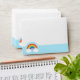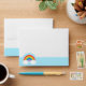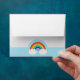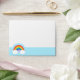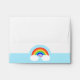Don't just send mail, send them a colourful rainbow! This cute envelope features a rainbow pattern on a sky-blue background on the inside. The outside features a band of blue colour with rainbows on the front and back. Each rainbow graphic features fluffy white clouds and pink hearts.