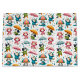 Add mirth to the gift-giving experience with this whimsical gift bag, which features an AI-generated repeating pattern of cute kitties and puppies garbed in galoshes, jackets, and rain ponchos and wielding colourful umbrellas while equally colourful raindrops fall about them.