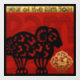 In a square are one black Ram paper-cut and a golden ornament inside of which is Goat with ideogram. Behind the scene there is a red background on which decorative and ornate letters form the words: RAM GOAT YEAR. Design on large square window decals with black background. Matching greeting card, holiday postcard, party supplies and more soon... Perfect for Chinese New Year of The Ram or Goat 2027 or Birthday (people born in Ram or Goat year). -------- "The Goat (Chinese: 羊; pinyin: yáng) is the eighth sign of the 12-year cycle of animals that appear in the Chinese zodiac related to the Chinese calendar. The sign is also referred to as the Ram or Sheep sign, since the Chinese word yáng is more accurately translated as Caprinae, a taxonomic subfamily which includes both sheep and goats. (...) People born within these date ranges can be said to have been born in the "Year of the Goat", while also bearing the following elemental sign: