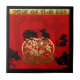 In a square are 5 black rats, tow perched on a golden shape inside of which is the the sixth mouse with ideogram. Behind the scene there is a red background on which decorative and ornate letters form the words: RAT YEAR. Design on square ceramic tile. Perfect for Chinese New Year of the Rat or birthday (people born in Rat Year). ----- "The Rat (子) is one of the 12-year cycle of animals which appear in the Chinese zodiac related to the Chinese calendar. The Year of the Rat is associated with the Earthly Branch symbol 子. Year of the Rat is the leap year. People born within these date ranges can be said to have been born in the "Year of the Rat", while also bearing the following elemental sign: