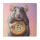 Capture the adorable charm of this Cute Rat With Chocolate Chip Cookie ceramic tile. This delightful illustration features a sweet rat enjoying a scrumptious chocolate chip cookie, bringing whimsy and warmth to any space. This tile adds a touch of playful personality to your kitchen backsplash, bathroom wall, or any other surface. Elevate your décor with this unique blend of cuteness and culinary delight.