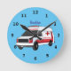 Cute red ambulance van cartoon round clock