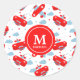Cute Red and Blue Planes and Clouds Kids Monogram Classic Round Sticker