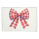 This cute pillowcase features a red and cream gingham plaid bow on the front and matching bow pattern on the back.