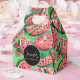 This cute, colourful favour box features an artsy watercolor illustration of red watermelon slices with striking black seeds, set against a vibrant green background. In the centre, an elegant black circle frames a customisable modern white handwritten name, adding a personal and sophisticated touch. Perfect for summer garden parties or any fresh, fun occasion, it brings delightful summer vibes to your celebration. Fully personalizable, this box makes a unique gift for guests, ideal for weddings, birthdays, or outdoor events. Add a playful yet refined touch to your summer gathering with this charming, customisable favour box!