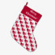 Cute Red and White Christmas Sock Pattern with text Joy to the World, Christmas Stocking with custom text Merry Christmas