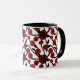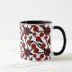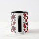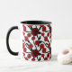 Red, black and white flowers whimsical tiled pattern coffee mug.