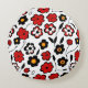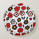 Red, black and white flowers whimsical tiled pattern birthday tags.