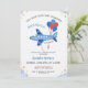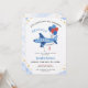 Cute Red & Blue Airplane Balloon 5th Birthday Invitation