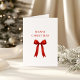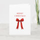 Cute Christmas card featuring a simple and minimalist design with a red bow along with the greeting "Merry Christmas". Use the template to add your personalised message.