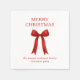 Cute Christmas napkins featuring a simple and minimalist design with a red bow along with the greeting "Merry Christmas" and your family name.