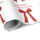 Cute Christmas wrapping paper featuring a simple and minimalist design with a red bow along with the greeting "Merry Christmas".