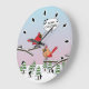 Cute Red Cardinal Singing Merry Christmas Large Clock