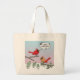 Cute Red Cardinal Singing Merry Christmas Large Tote Bag