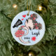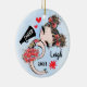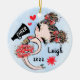 Cute, Stylish and Girly cheerleading Christmas tree ornament. Red team colors. Featuring a cheerleader girl with Brown hair design and a watercolor blue background. More team colors as well as hair and skin colors available in my shop. Customize with your name and year. Great gifts and keepsake for Cheerleaders, Cheer Teams and Coaches.