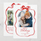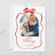Cute Red Christmas 4 Photo Hand-Drawn Bow Ribbon Holiday Card