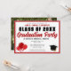 This cute red custom senior photo grad party invitation features your high school or college name for the class of 2026. Customise with your graduate name under the chic, bold handwritten script for a great personalised graduation celebration invite that is decorated with balloons and a grad cap. Add a full photograph on the back.