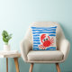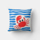 Cute Red Crab & Blue Waves Coastal Chowder Cushion